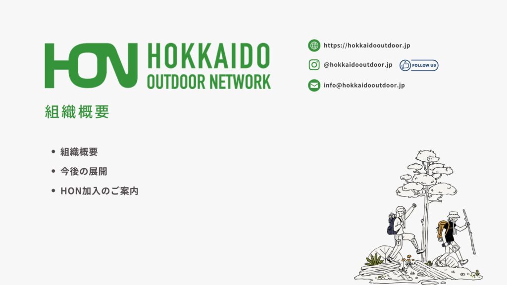 HONは、会員同士がつながり、学び合い、協働することで、それぞれの専門性と強みを活かし、北海道のアウトドア業界全体の持続的な発展を後押しします。