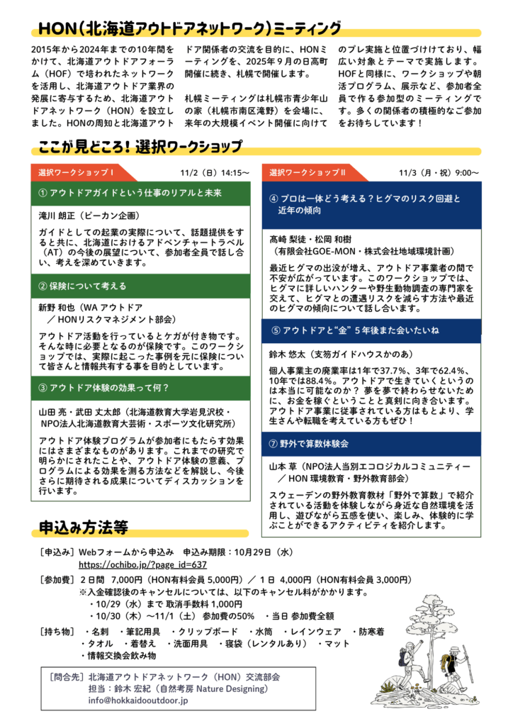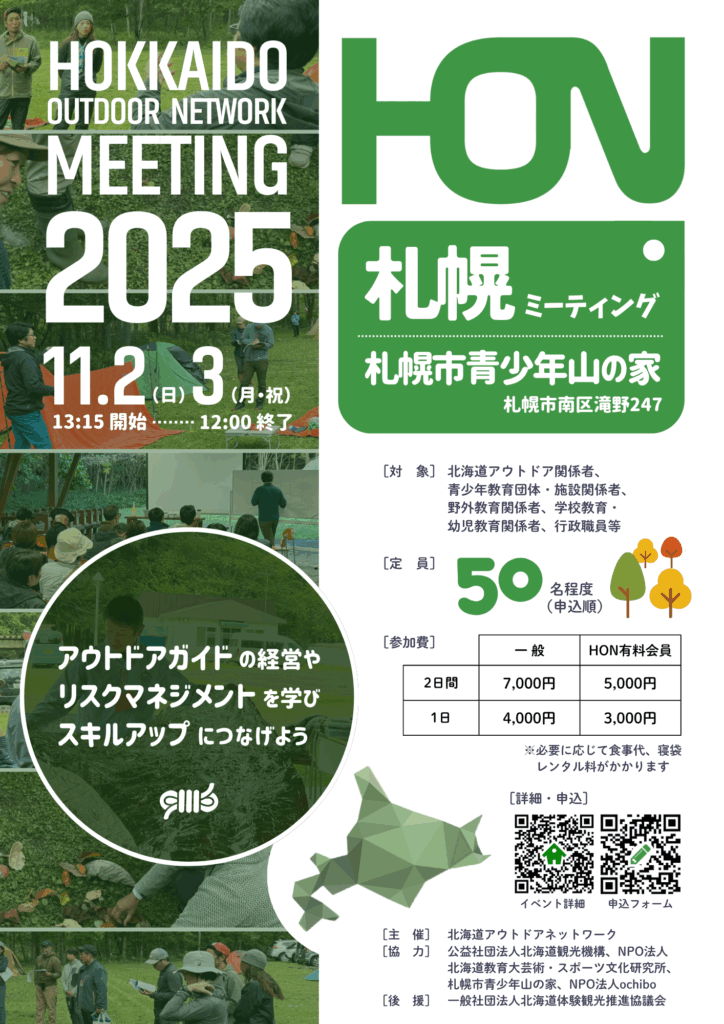 【対 象】北海道アウトドア関係者、青少年教育団体・施設関係者、野外教育関係者、
