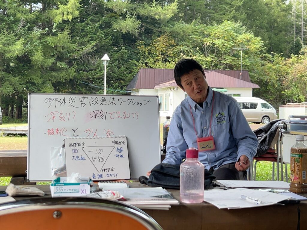 北海道のアウトドア業界においては、都市部と違い「救急車がすぐに来られない環境」で活動する機会が少なくありません。そのため、一般的な都市型救急法だけでなく、自然環境下での事故やトラブルに対応するための野外災害救急法の理解と普及が強く求められています。