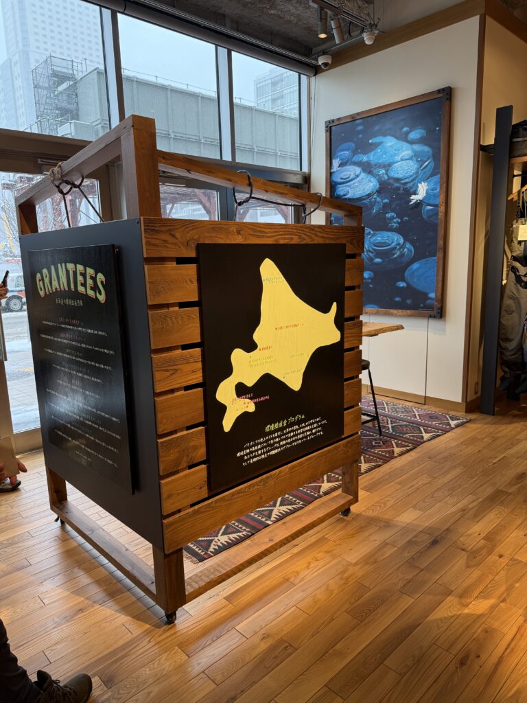店舗内には専用のカウンターが設置され、各アクティビティの先駆者とのワークショップや、環境・社会問題の本質的な解決に向けた「考える場」の創出を目指しているとのこと。 今後、“北海道の自然を守るアクションに出会える場所”として機能していきそうです。